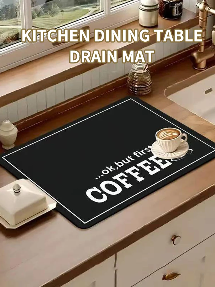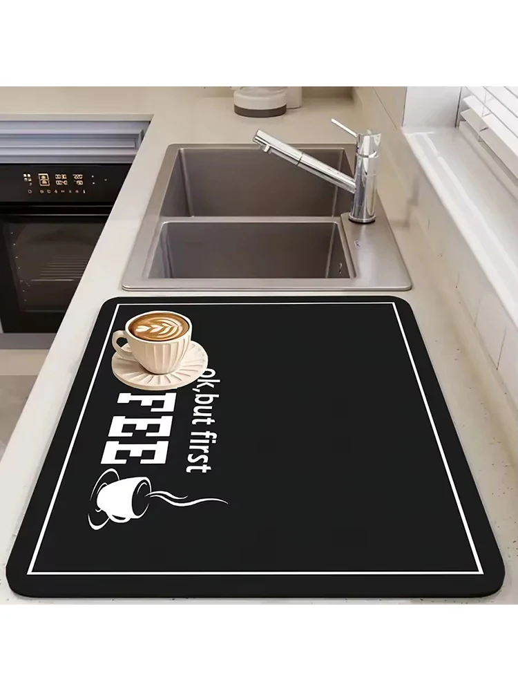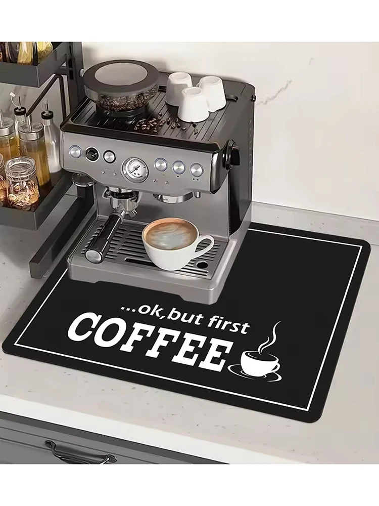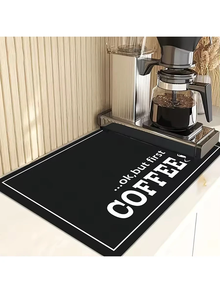 1pc black letter Coffee printed coffee machine mat modern minimalist style kitch