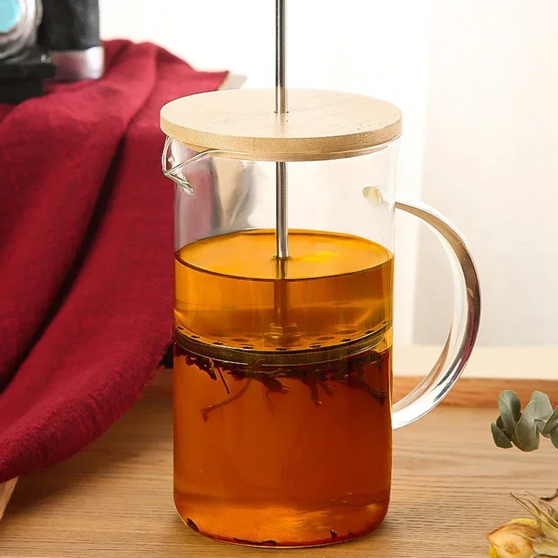 1. Adopting a glass pot body design, the transparent material allows for clear observation of the beverage extraction process. Paired with a metal or wooden press top cover, it combines practicality and aesthetics