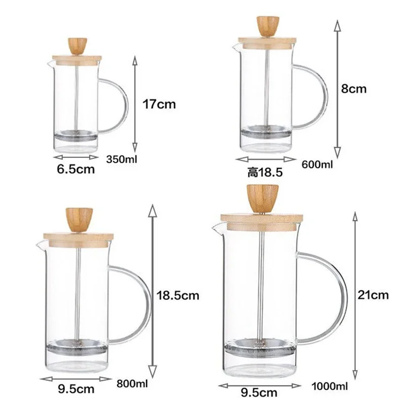 350-1000ML French Press Coffee Maker Stainless Steel High Borosilicate Glass H