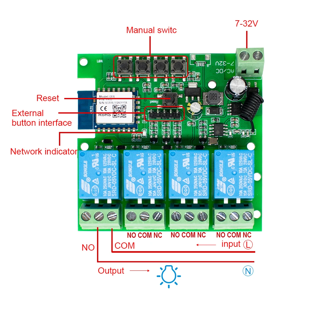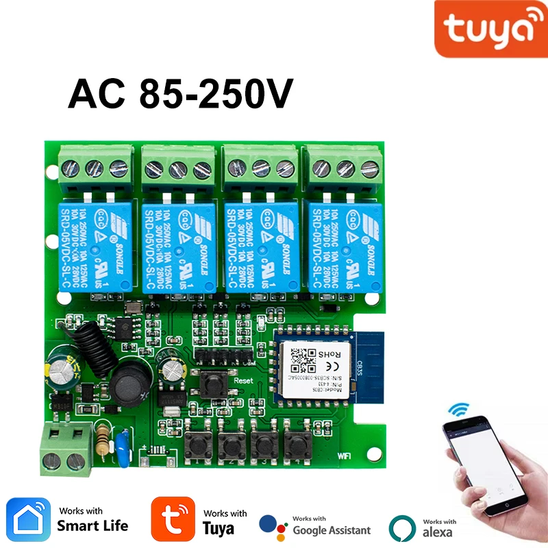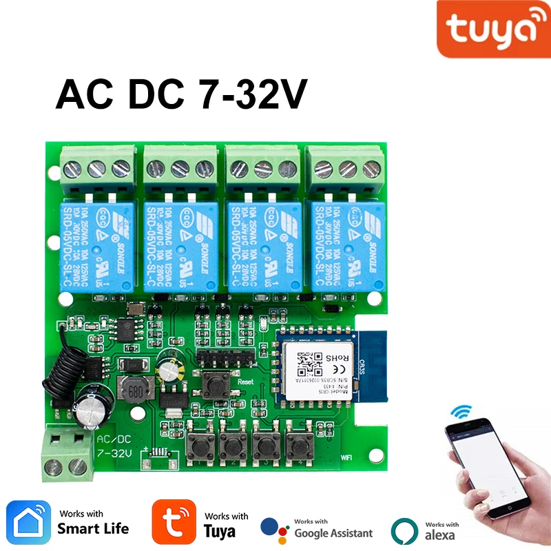 4CH Tuya Wifi Relay Smart Wireless Switch Module 4 Channel 7-32V 85-250V 220V 11