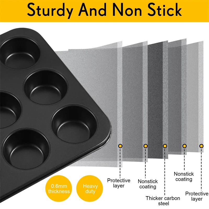 6/12 Cups Square Cupcake Pan Muffin Tray Cupcake Mold Muffin Pan Carbon Steel Ba