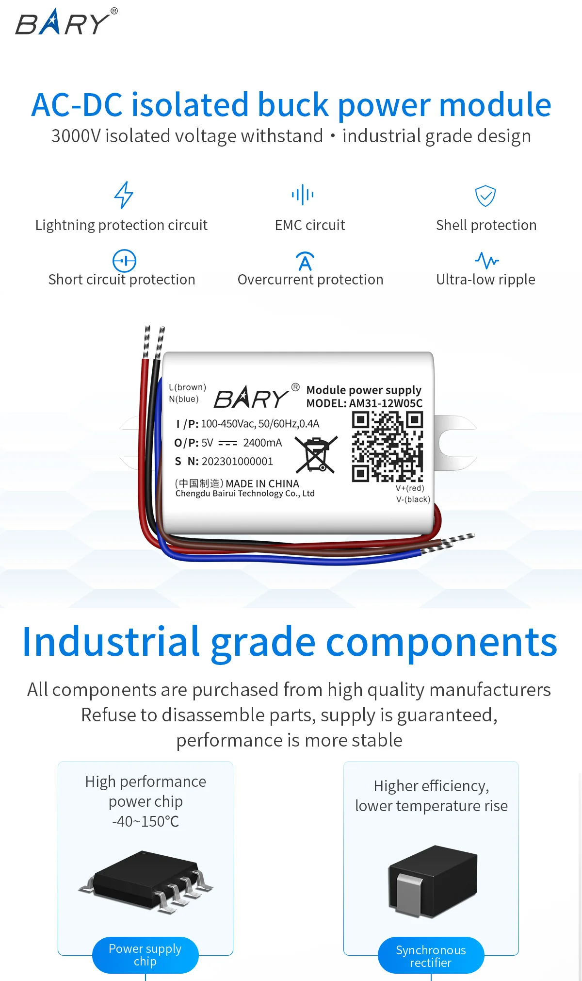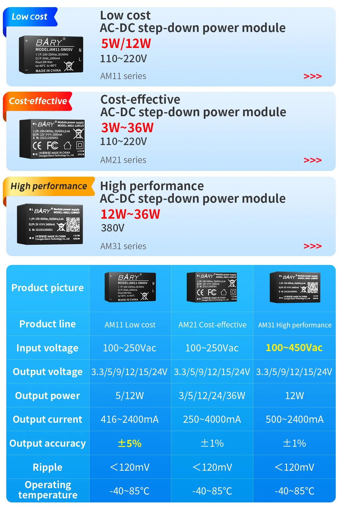 AM31-12W AC-DC step-down power module |220V to 5V2.4A|12W|380V to 12V1A Switchin