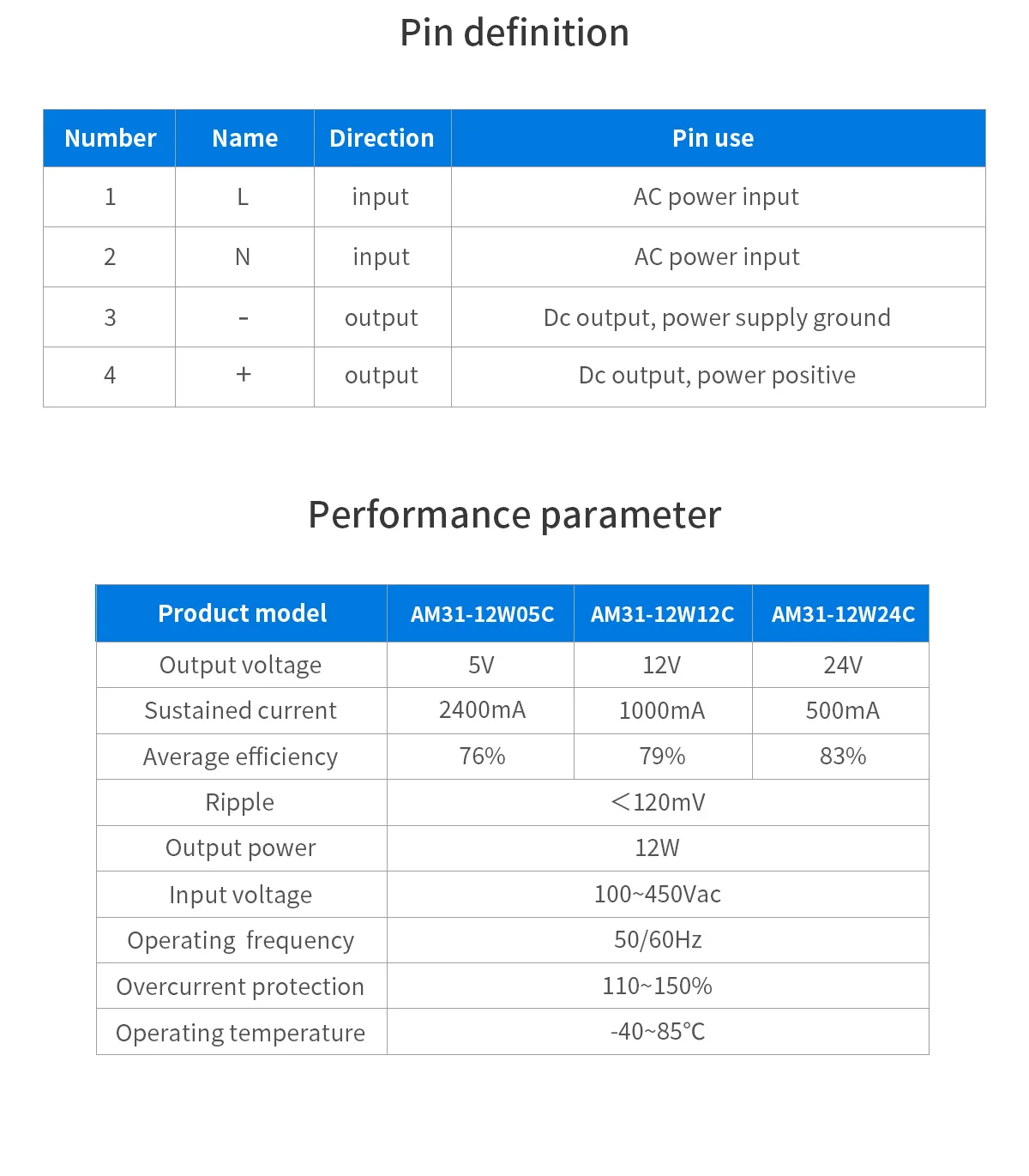 Model Number: AM11-12W AM31-12W