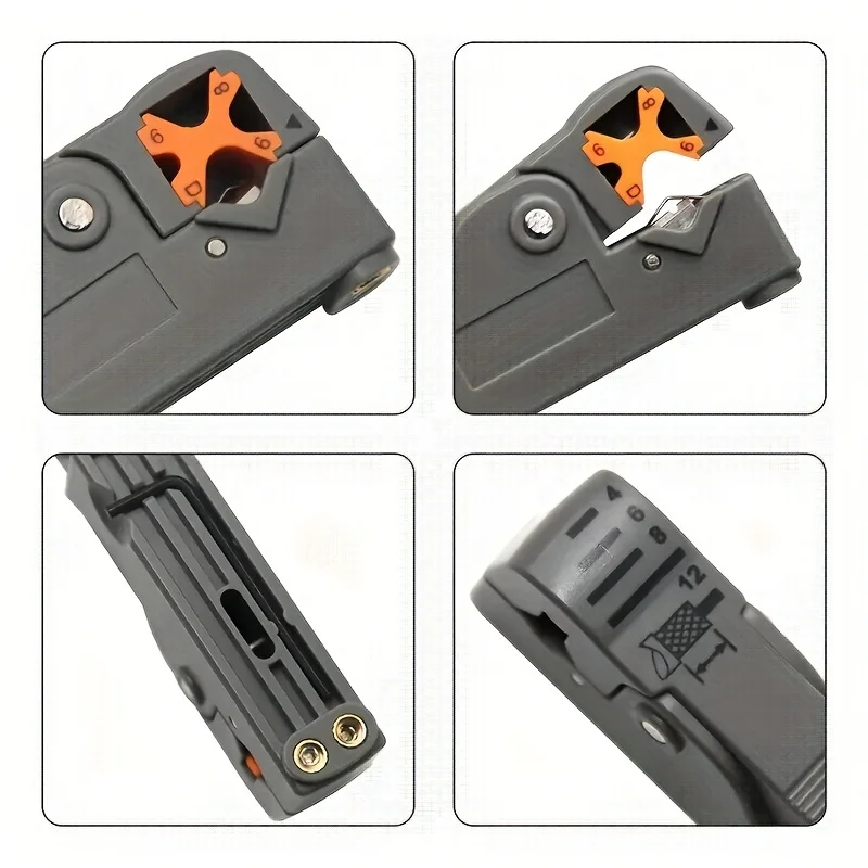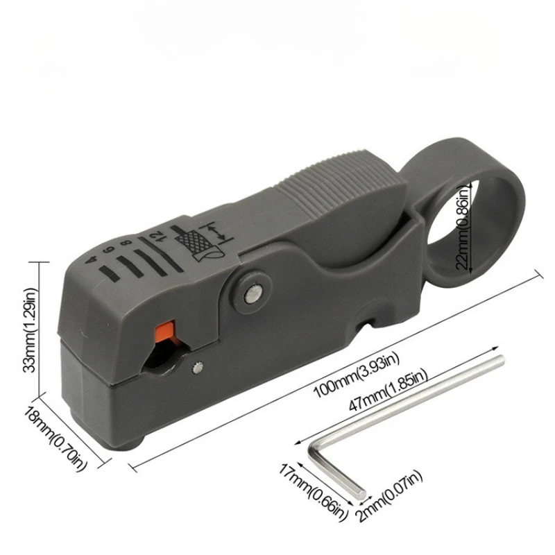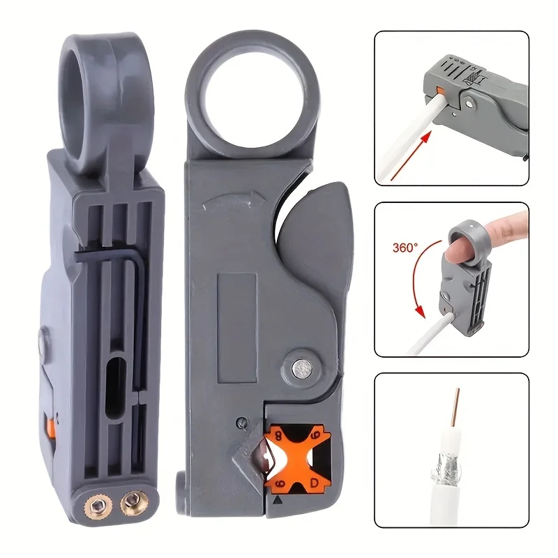 Versatile Compatibility: Specifically engineered for RG6 and RG59 coaxial cables, providing compatibility with commonly used cables in residential and commercial installations.Rotary Stripping Mechanism: The rotary design enables swift and consistent stripping action, reducing manual effort and enhancing efficiency during cable preparation.Adjustable Stripping Depth: Equipped with an adjustable blade depth mechanism, allowing users to customize the stripping depth according to the specific requirements of their project, ensuring precision and consistency in every strip.Durable Construction: Crafted from high-quality materials, this coax stripper is built to withstand the rigors of regular use, ensuring longevity and reliability over time.Ergonomic Design: Ergonomically designed handles provide a comfortable grip and enhanced control, minimizing hand fatigue and facilitating precise stripping maneuvers, even during prolonged use.