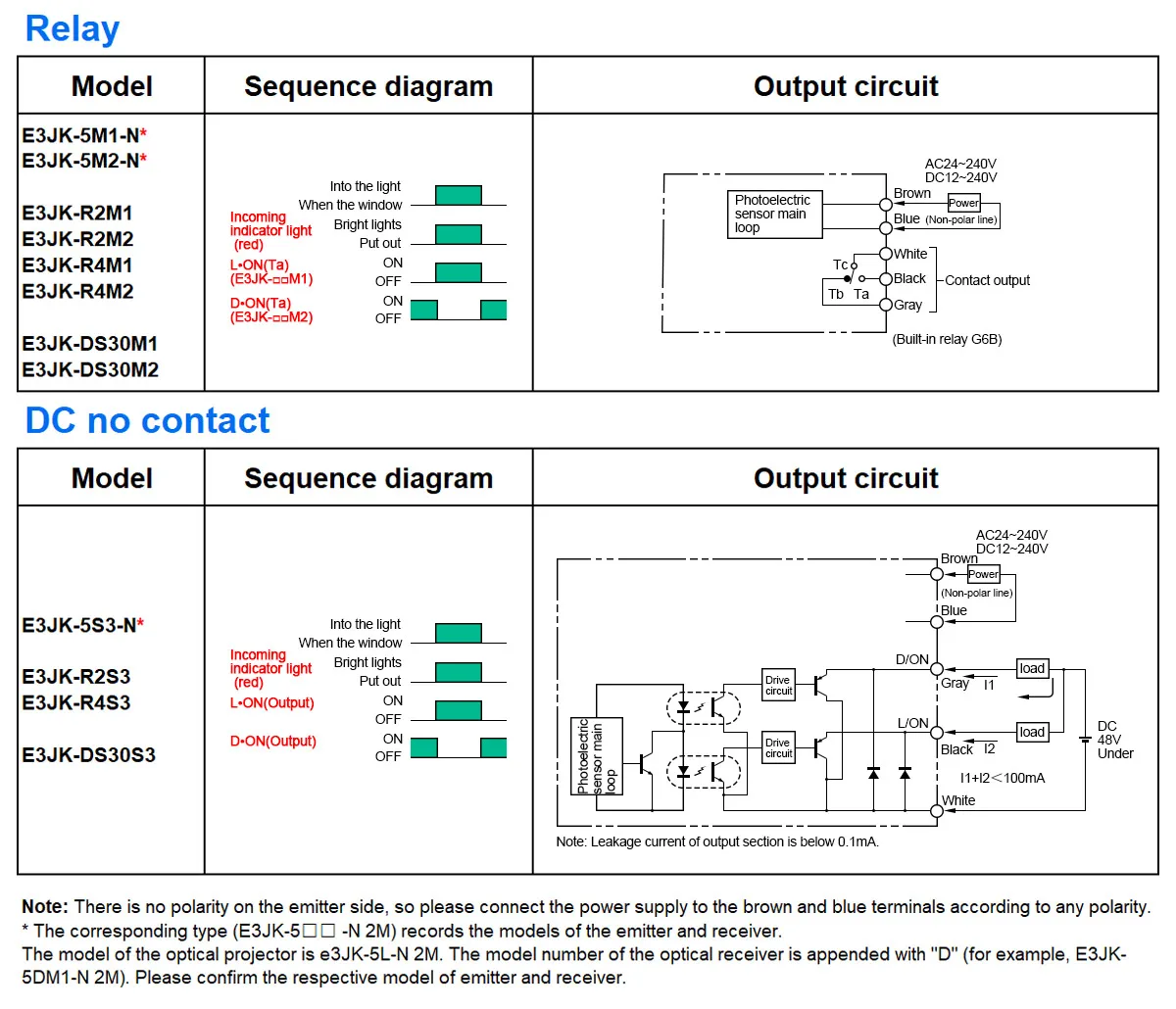 Model Number: E3JK-DS30M1/2, E3JK-R4M1/2