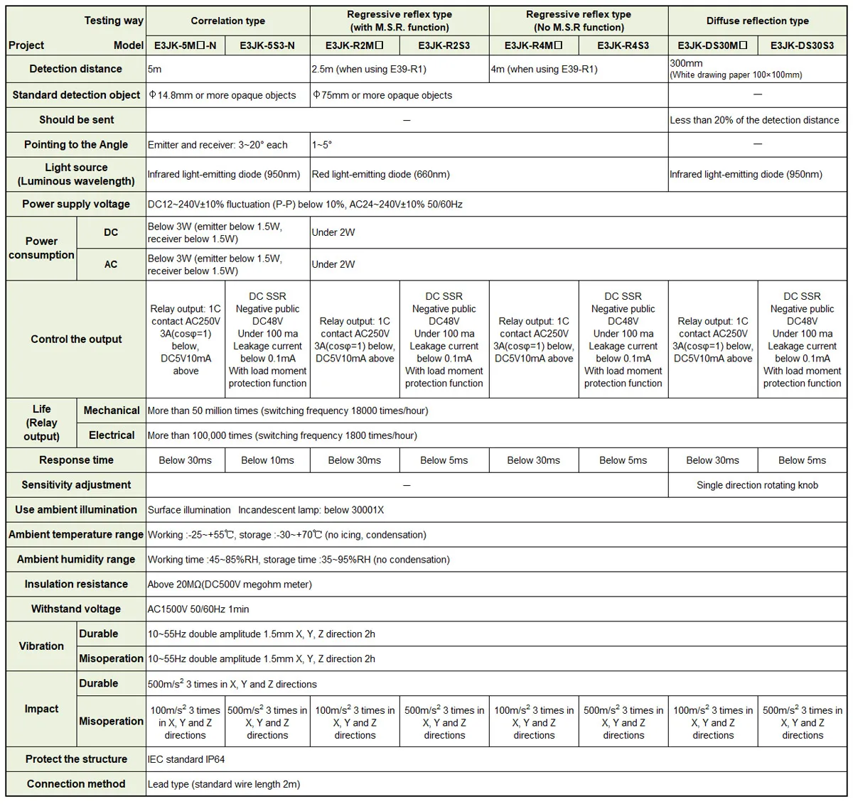 Diffuse Reflective Sensor E3JK-DS30M1/M2 Specular Reflection Photoelectric Switc
