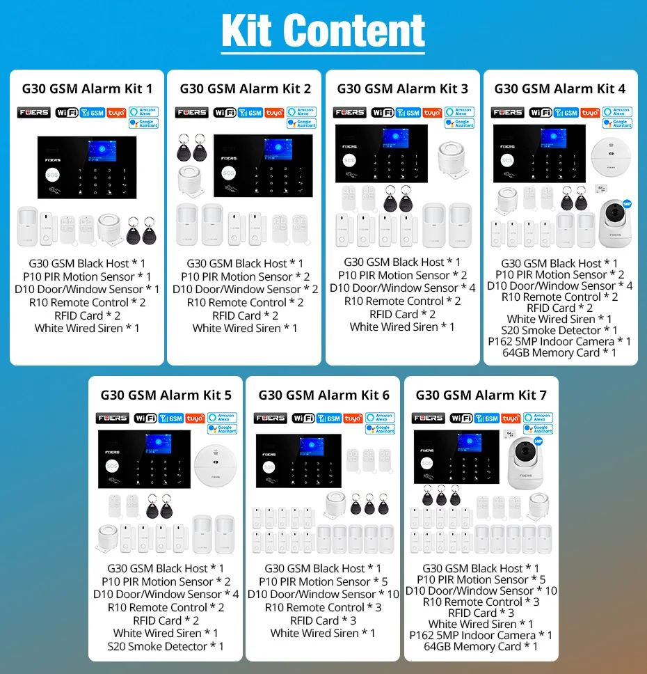 FUERS WIFI GSM Alarm System Wireless Home Burglar Security Alarm System Tuya APP Control Siren Motion Detector PIR Smoke Sensor