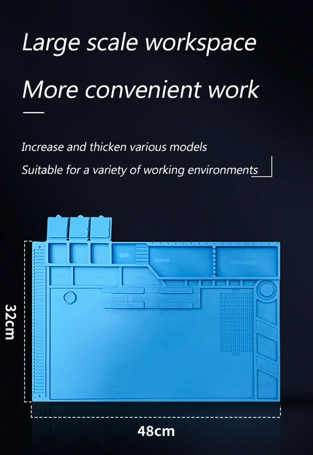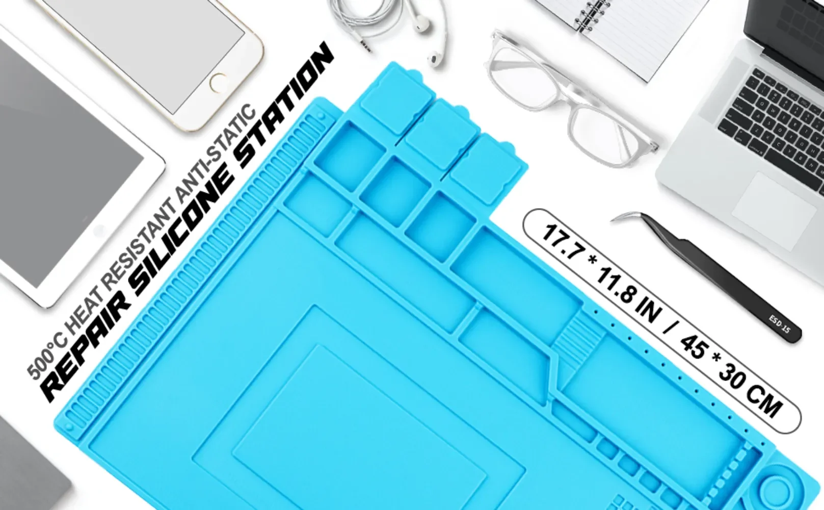 【ANTI-SLIP & ANTI-STATIC / EASY CLEAN】Adopt anti-slip design both of surface and back, and it is static-free making your repair work easy. Soft silicone material is very easy to clean and roll-up for convenient storage.