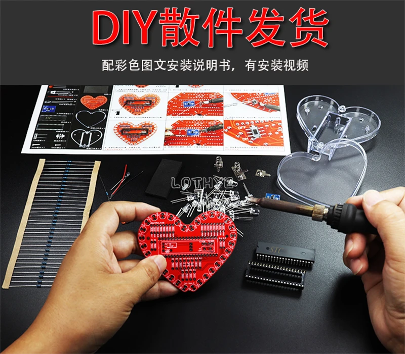 Multicolor LED Heart-Shaped Flow Light DIY Electronic Kit RGB Colorful Love Hear