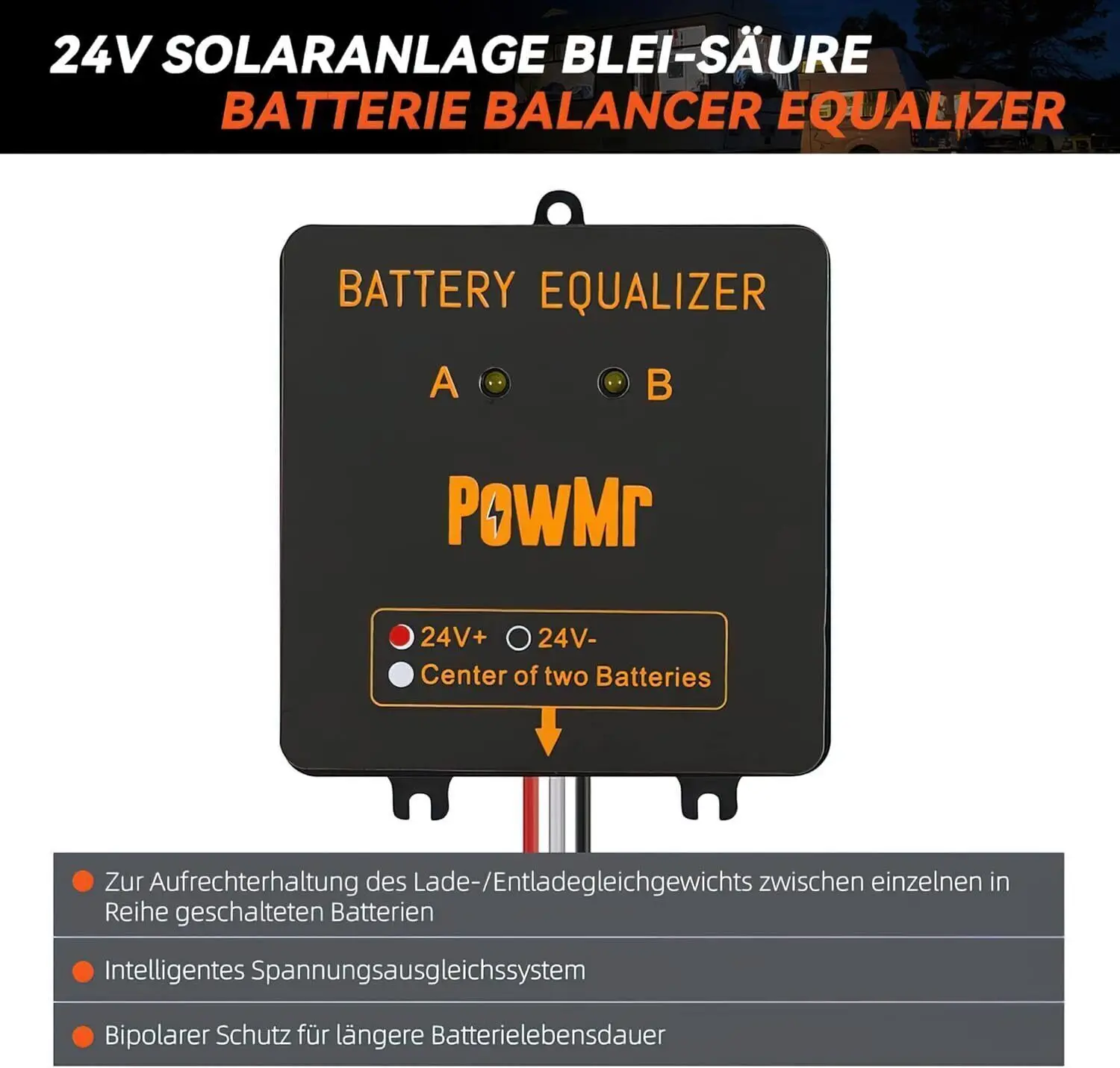 PowMr 24V Battery Balancer 24v Solar System 12V Battery Equalizer Lead Battery Series Solar Cell Regulator Protects the Battery