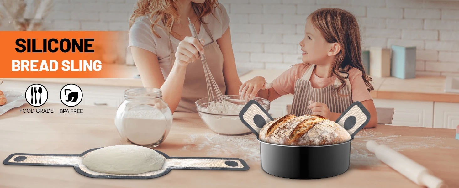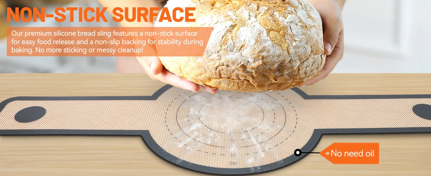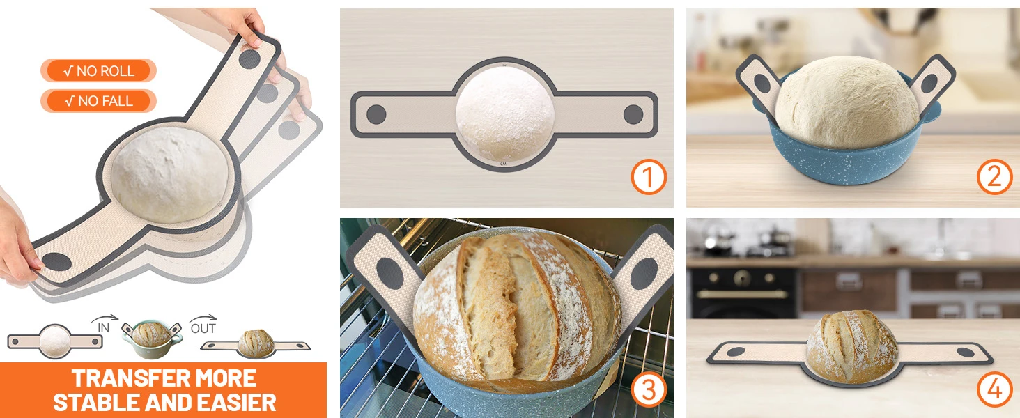 Reusable Silicone Bread Sling for Dutch Oven Baking Mat Long Handles Non-Stick L