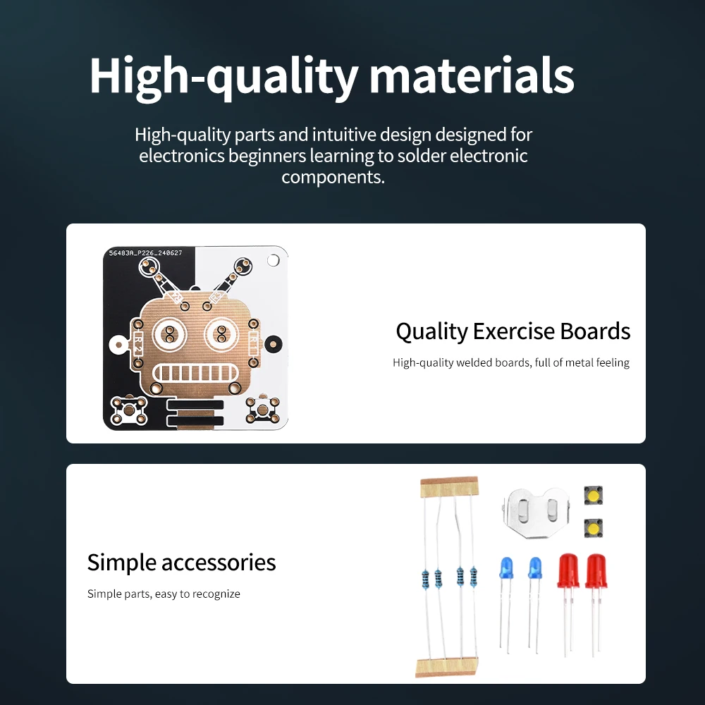 1. [Suitable for Beginners]: High quality parts and intuitive design, designed specifically for electronic beginners to learn how to solder electronic components.