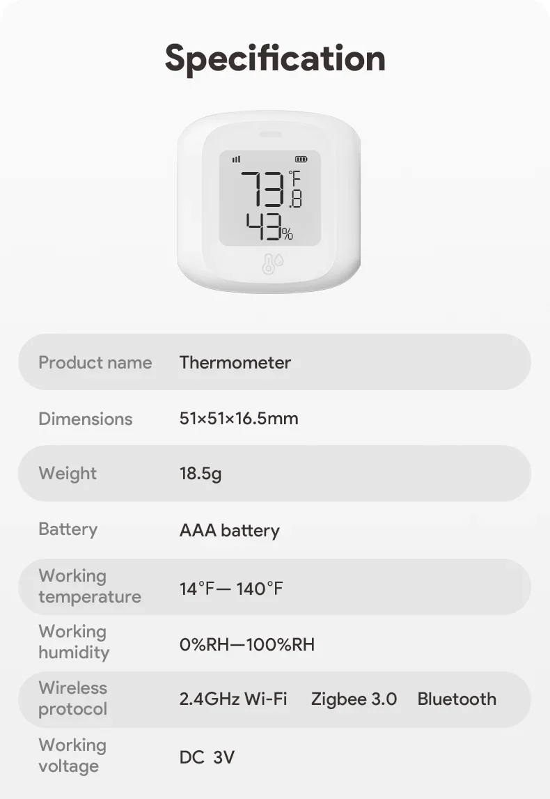 Smart WiFi/Zigbee Temperature and Humidity Sensor Indoor Hygrometer Thermometer