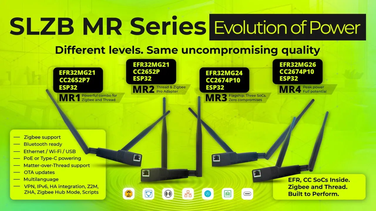 ✅ Options on different Zigbee SoCs: SLZB-06 on CC2652P, SLZB-06p7 on CC2652P7 and SLZB-06M on EFR32MG21.