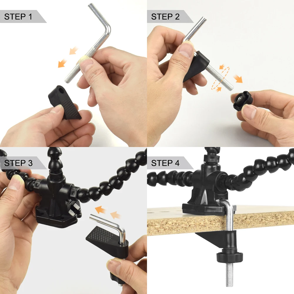 Feature:1.3/4/5 flexible arms helping hands are easily positioned where you want them. Eliminates the frustration of traditional helping hands.