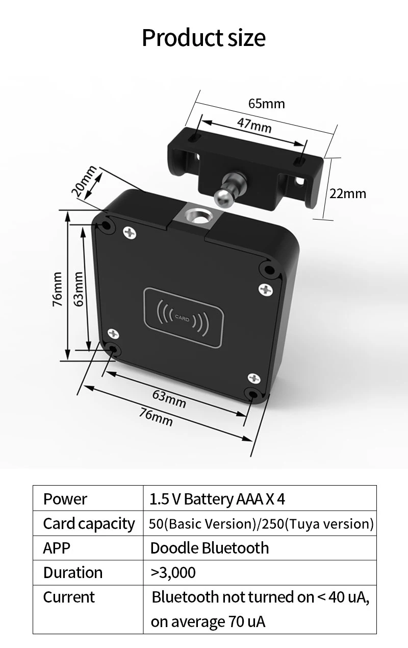 Swipe to unlock/Tongtong Lock APP+IC induction swipe to unlock, remote sensing. Adapt to 99% of cabinet doors, drawers, mechanical automatic rebound, sensing distance 40-60mm.