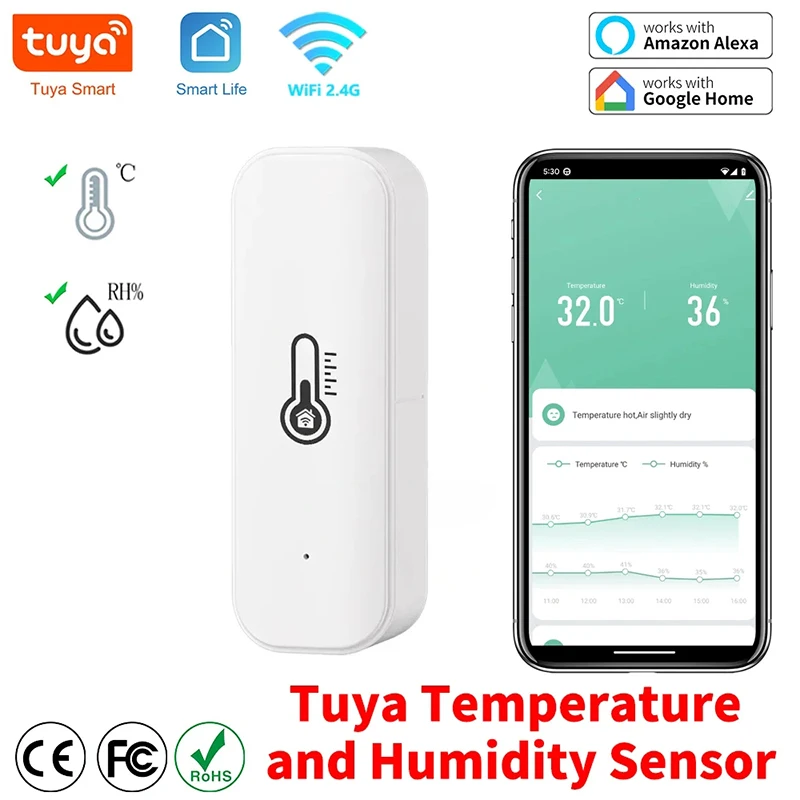 Tuya WiFi Temperature And Humidity Sensor APP Wireless Remote Monitor For Smart Home SmartLife Work With Alexa Google Assistant