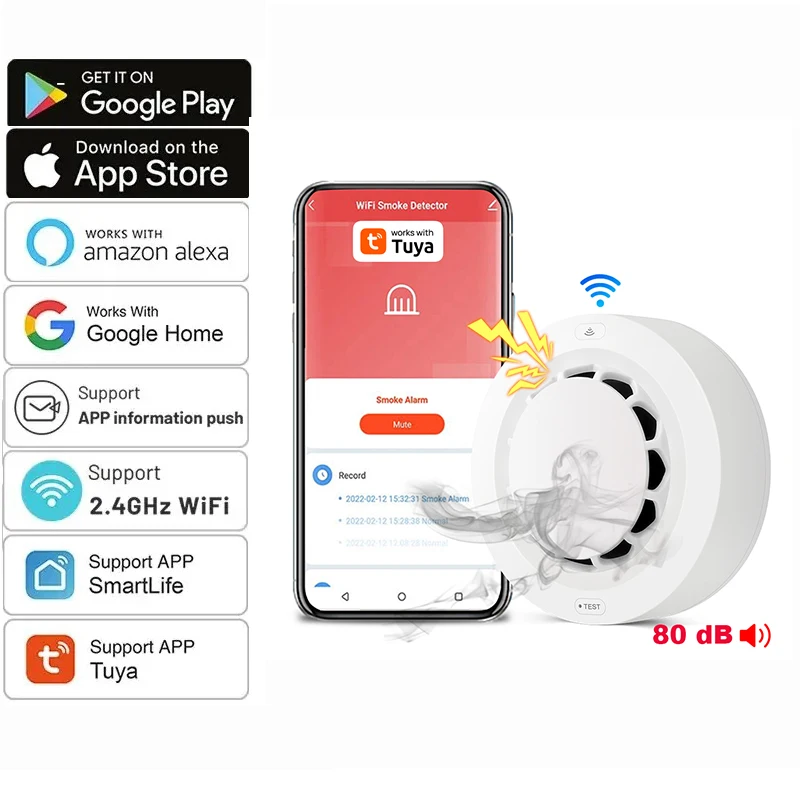 Tuya WiFi Smoke Sensor Alarm Fire Protection Smart Smoke Detector Smokehouse Combination Fire Alarm System Firefighters