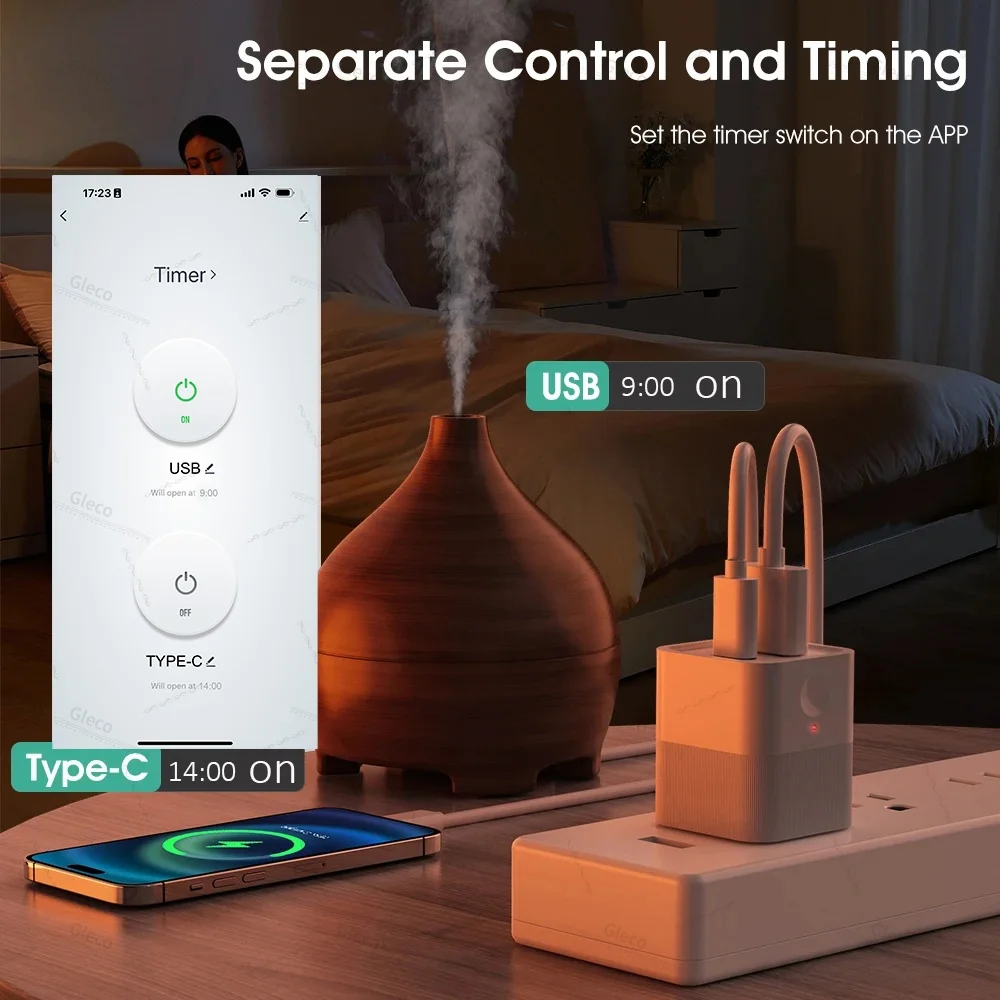 Full Independent Control: Switch the USB and Type-C ports ON/OFF separately via the app. Set different timers and schedules for each port for maximum flexibility.